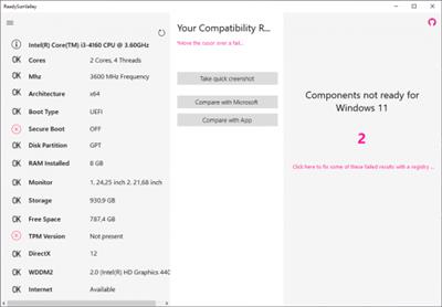 ReadySunValley takes as much time as is needed to run every one of the tests it needs, looking at the base necessities of Windows 11 to the determinations of your PC. When every one of the tests are finished, the outcomes are shown in a one-window GUI, where you can see every one of the legitimate and the bombed results. Moving the mouse cursor over a measure that isn't met shows popup messages with additional clarifications.